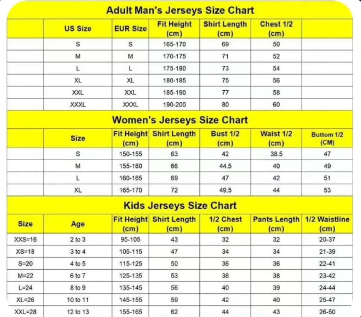 ¡Elige siempre la talla correcta y disfruta al máximo de tu camiseta de fútbol favorita! 🤩👕 Nuestra guía de tallas es simple, clara y precisa. ✅ Compra con confianza y lleva tu pasión por el fútbol al siguiente nivel. ⚽